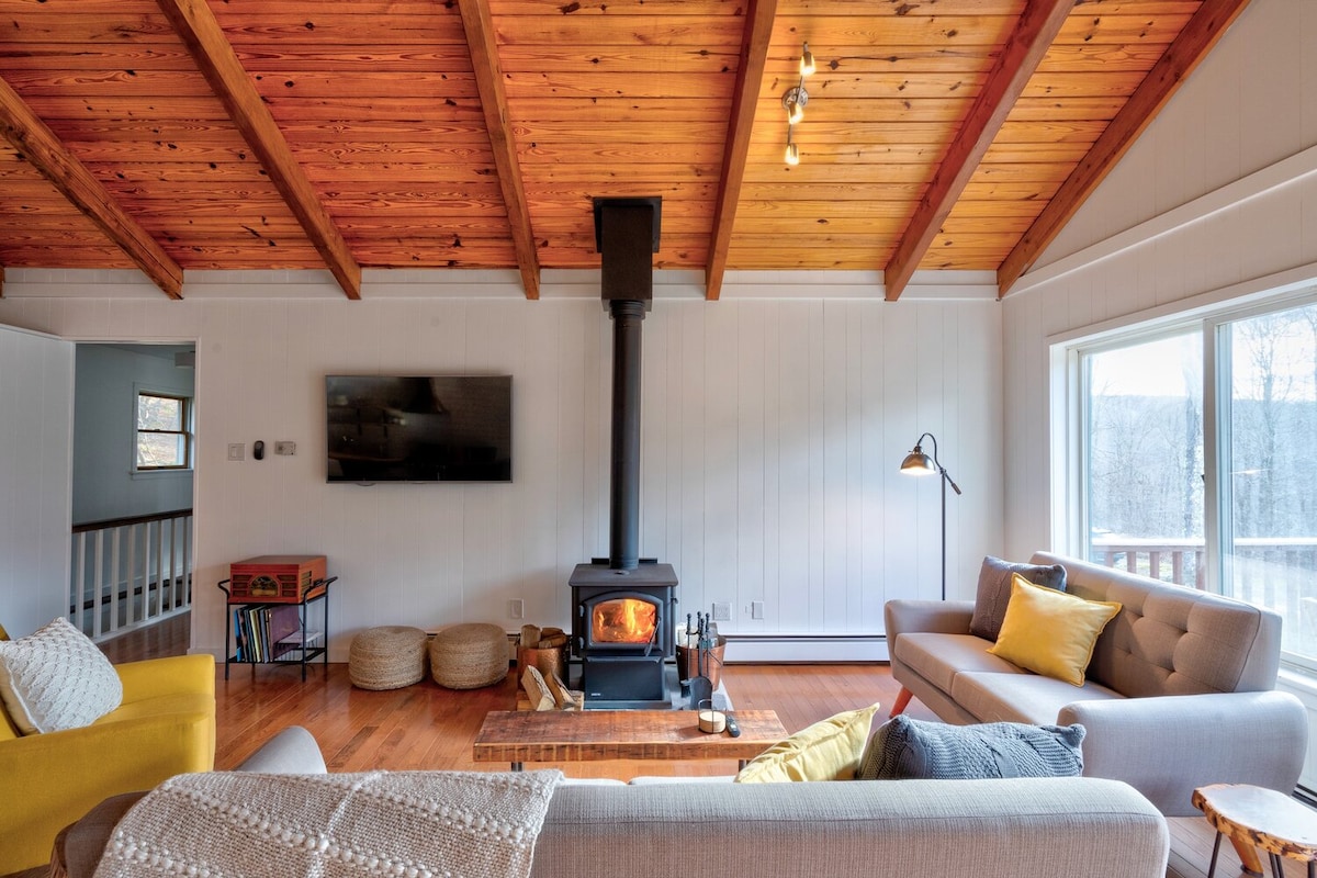 Évadez-vous à la campagne dans le chalet en bord de rivière de Sean et Brad sur la rivière Neversink. Ancien magasin de ski et studio de yoga populaire, cette propriété entièrement rénovée vous offre toutes les commodités possibles. Traversez la rue pour lancer votre kayak ou jeter une ligne dans certains des meilleurs endroits de pêche à la truite, faites griller des s'mores autour du feu ou visitez le Resorts World Casino, à seulement 5 minutes. Golf, randonnée pédestre, VTT, brasseries et distilleries locales... tout est également à proximité.