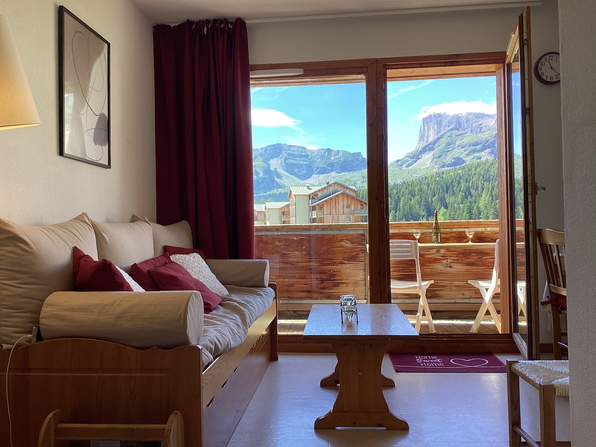Location en couple ou en famille notre appartement "Le balcon des écureuils 🐿️" 27m3 au troisième étages du grand bâtiment du bois d'aurouze côté vallée, rénover très bien exposé, vue dégagée avec balcon. équipée pour 2 a 4 personnes (cinquième sur demande possibilité de lit parapluie) Un canapé convertible 160 avec sur matelas mémoire de forme, lit superposé, deux placards. le coin nuit a une séparation d'origine avec une verrière qui sépare le coin enfants et le canapé lit.