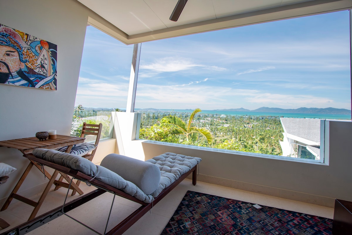 Un bel appartement lumineux et aéré d'une chambre avec Internet haut débit privé (500 Mbps), situé directement entre les deux principaux points chauds de Chaweng animé et le superbe Bophut (village de pêcheurs). À 5 à 7 minutes en voiture de plages incroyables. Le complexe dispose de 2 grandes piscines, de douches extérieures, d'une petite salle de sport, d'un sauna et d'un hammam. L'appartement est un appartement d'angle au dernier étage offrant les meilleures vues du complexe et de nombreuses fenêtres et vues sur les environs.