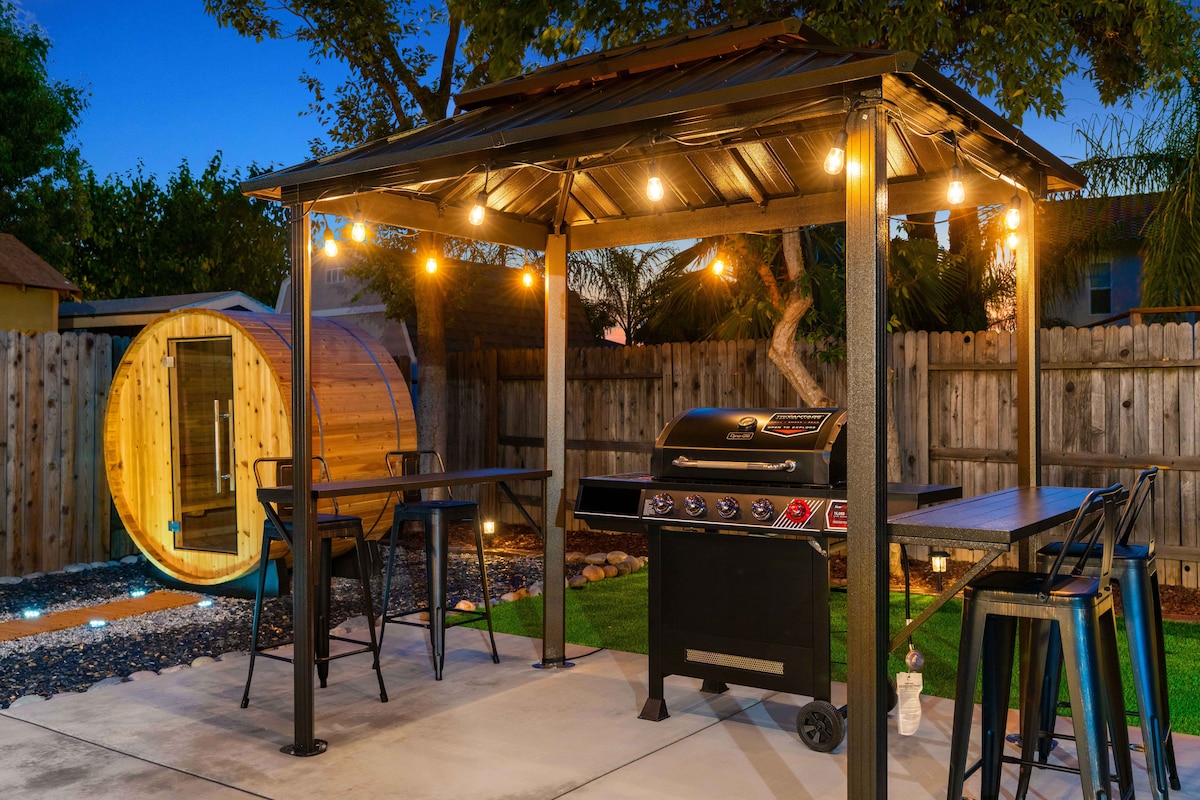 Bienvenue dans votre retraite idéale, conçue avec soin pour offrir confort, divertissement et une touche de luxe pour un séjour inoubliable. Parfait pour les escapades romantiques, les vacances en famille ou les voyages d'affaires, cet espace offre quelque chose pour tout le monde. Profitez d'un bain apaisant dans le jacuzzi sous les étoiles, d'un dîner en plein air avec vos proches ou de vos émissions préférées dans le salon confortable. Idéalement situé à seulement 4 minutes de l'amphithéâtre, c'est l'endroit idéal pour explorer la région.