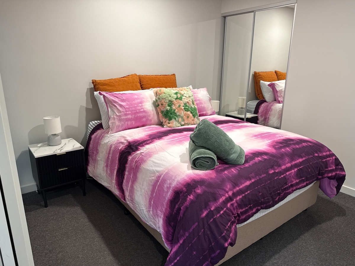 Bienvenue dans notre spacieux appartement d'une chambre avec des fenêtres du sol au plafond, situé dans une rue calme. L'appartement comprend un parking souterrain gratuit sécurisé. À seulement 2 minutes à pied de l'échange de bus le plus proche, avec un supermarché Woolworths Metro et diverses options de restauration juste en bas. Faites une promenade tranquille de 5 minutes jusqu'aux rives pittoresques du lac Belconnen. Idéal pour les couples ou les voyageurs seuls à la recherche de commodité et de tranquillité à Canberra.