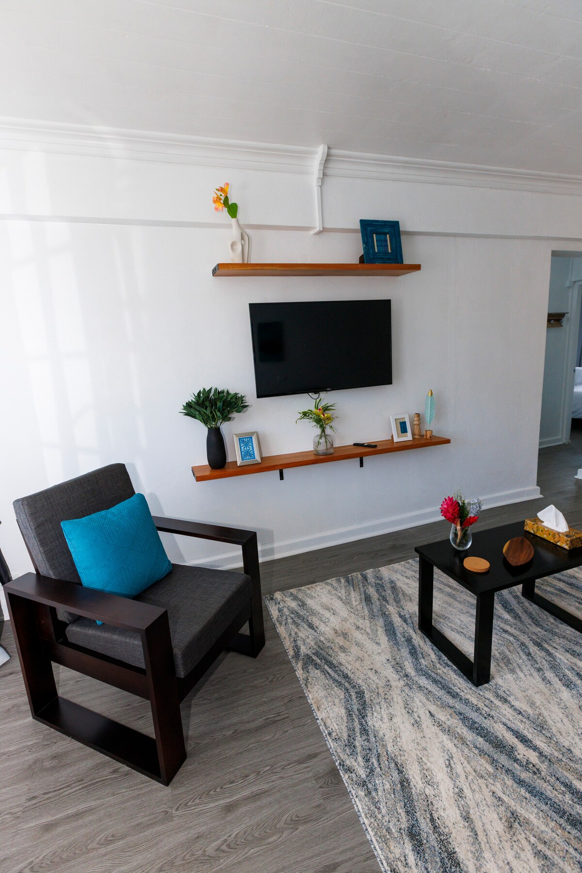 Cet appartement est parfaitement situé en plein cœur de Suva. À deux pas des cafés, restaurants et magasins populaires. Profitez de la commodité d'être en plein cœur de la ville, tout en profitant de la vue sur le coucher de soleil depuis le patio partagé. Vous avez accès à une cuisine entièrement équipée, à un salon confortable et élégant avec une télévision connectée et à la climatisation pour vous aider à vous détendre et à vous débarrasser de la chaleur de l'île du Pacifique !