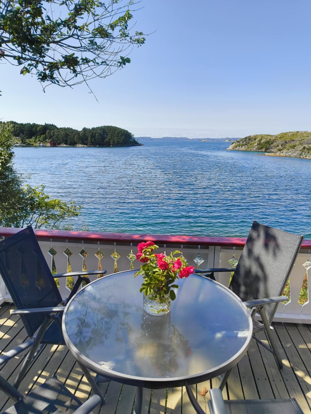 Maison et jardin fantastiques. Vue sur le fjord, bateau et pêche.