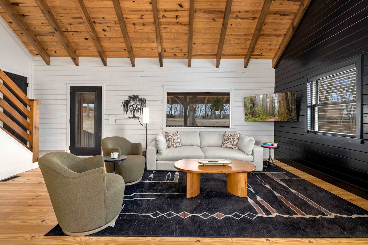 Niché à côté de Cricket Creek, ce chalet dispose d'un sauna, d'un jacuzzi, d'un brasero, d'un barbecue au charbon de bois et d'une cheminée. Cette cabane dispose de lumières d'accentuation personnalisées, d'une chambre principale spacieuse avec lit King Size et d'un loft surélevé avec deux lits jumeaux. Installez-vous confortablement dans le jacuzzi privé ou profitez d'une tasse de café ou de votre boisson préférée sur la terrasse arrière tout en écoutant la sérénité du ruisseau. Doté d'un sauna en cèdre, c'est l'endroit idéal pour vous détendre, vous relaxer et vous faire plaisir.