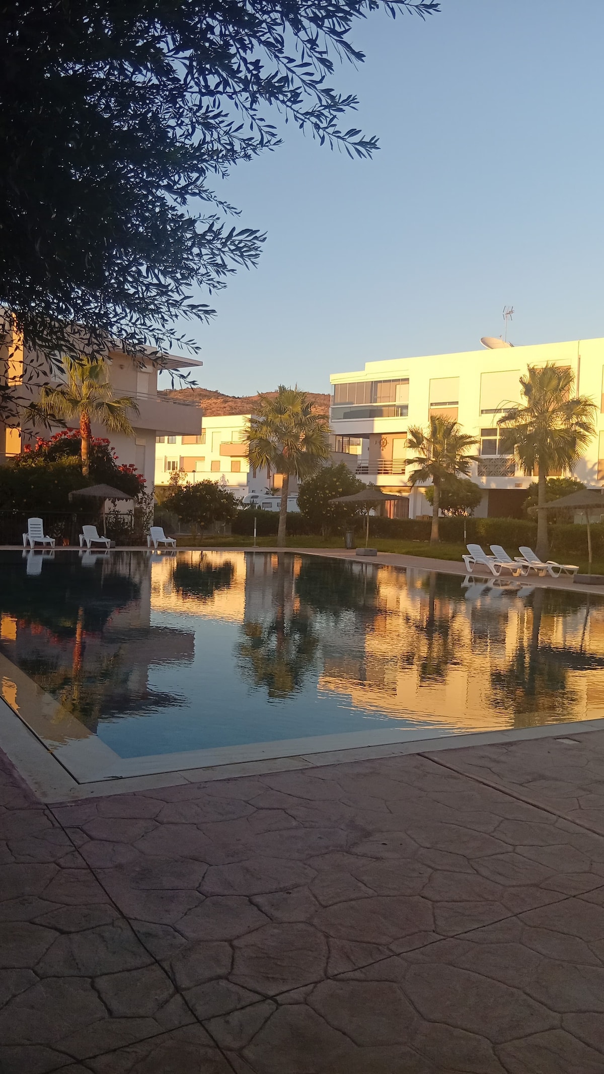 Ce logement paisible et chaleureux vous offre un séjour détente dans une résidence touristique sécurisé où vous pouvez trouvé tous ce que vous aurez besoin piscine, plage, jardin, restaurant, sandwicheries, épicerie, location de voiture, salon de coiffure... la résidence se trouve dans le village aourir de 10min par voiture à Agadir et 2km à taghazout. c'est un endroit préférables pour les surfeurs l' ensoleillement au lit grâce aux baies vitrées du terrasse climat printemps éternel