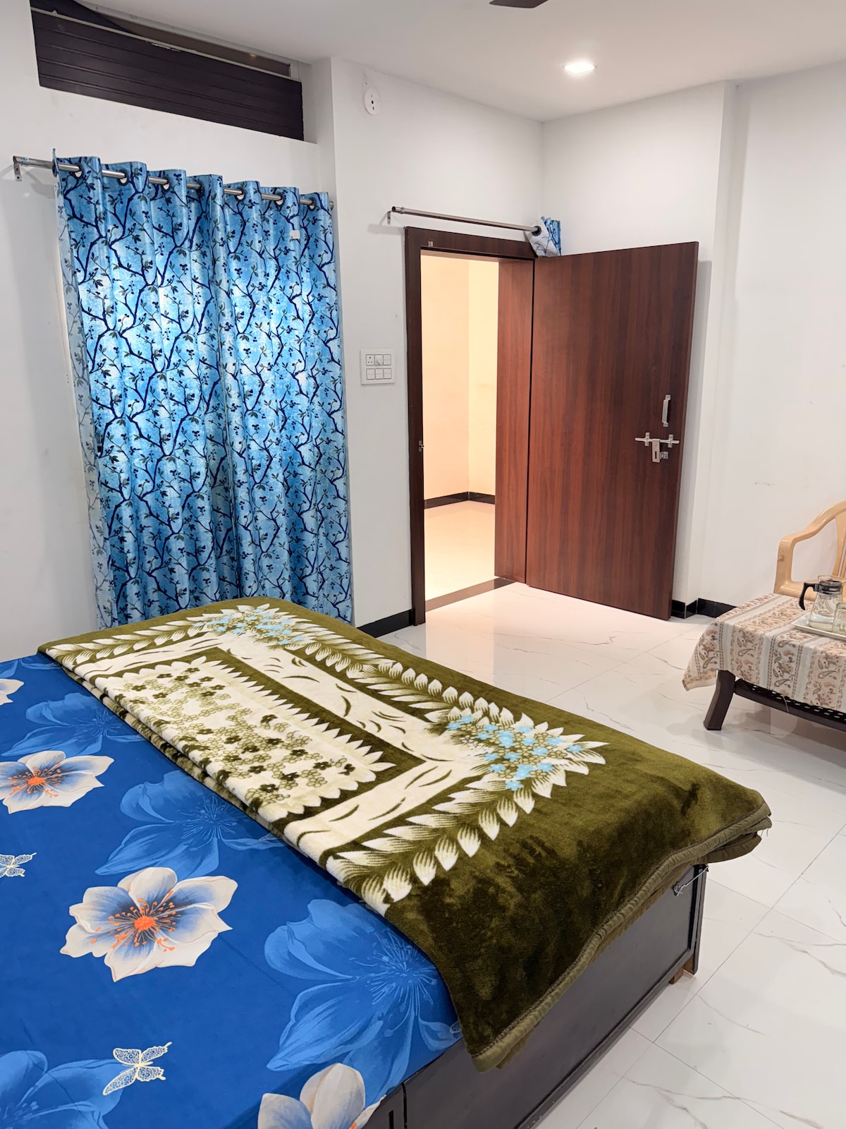 Bienvenue dans notre spacieuse retraite 2BHK à Ujjain, parfaite pour les familles et les groupes visitant le temple Mahakal. La maison dispose de chambres climatisées, d'un balcon privé, d'une cuisine de base (pour le thé/café), d'eau RO et d'un parking gratuit. Accueillez confortablement jusqu'à 7 personnes, avec de la literie supplémentaire pour 9 personnes maximum sur demande. Une très belle terrasse et jardin. Profitez d'une arrivée flexible, d'un quartier paisible et des conseils de l'hôte pour les visites du temple. Propre, confortable et soigneusement préparé — votre maison loin de chez vous à Ujjain.