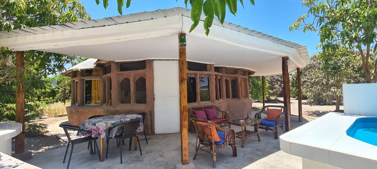Cabane "Utama"(Notre Maison à Aymara) est un espace pour profiter de la nature, avec des tamaris et des caroubiers typiques de la région, en plus de la piscine et une cabane accueillante autosuffisante idéale pour partager en famille, et profiter du plein air, du soleil et des nuits étoilées.