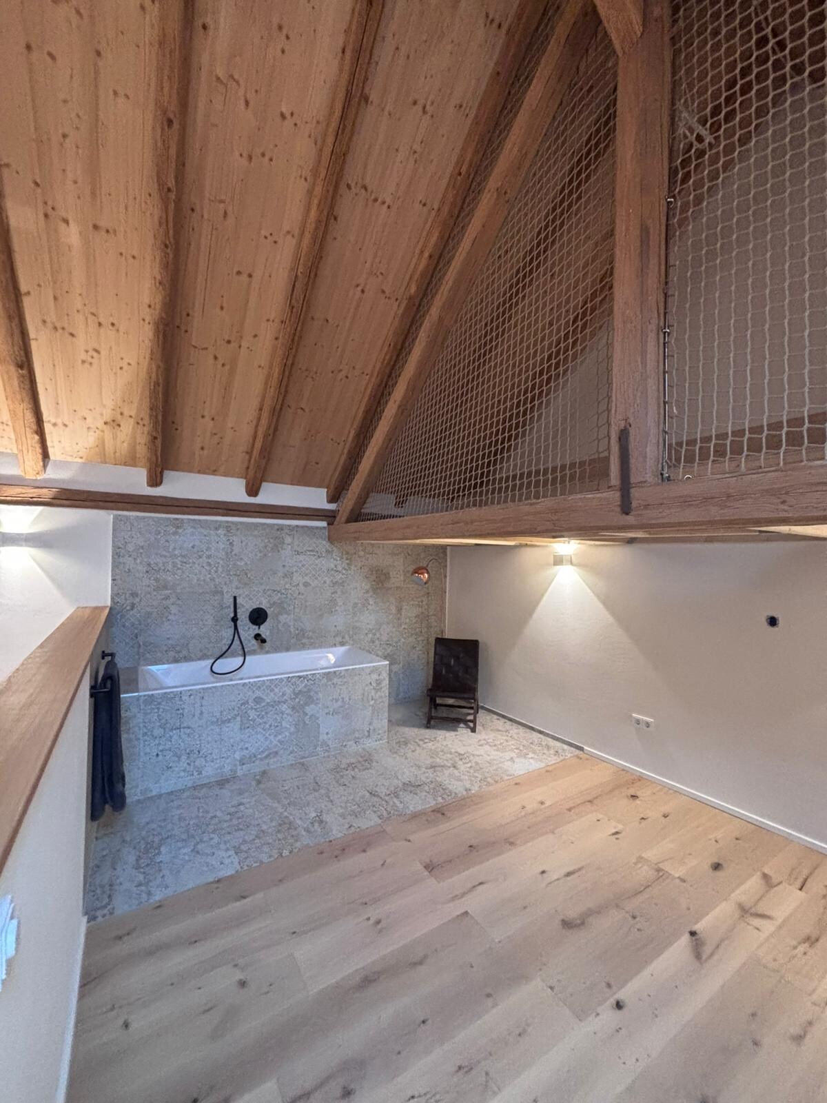 Wellness vacation home with sauna and fireplace, open construction in maisonette style on three levels, private terrace with outdoor shower. The Tauber Relax Loft Münch is located directly on the Main-Tauber-Franconian Cycle Eight in the Hochhausen part of Tauberbischofsheim.
