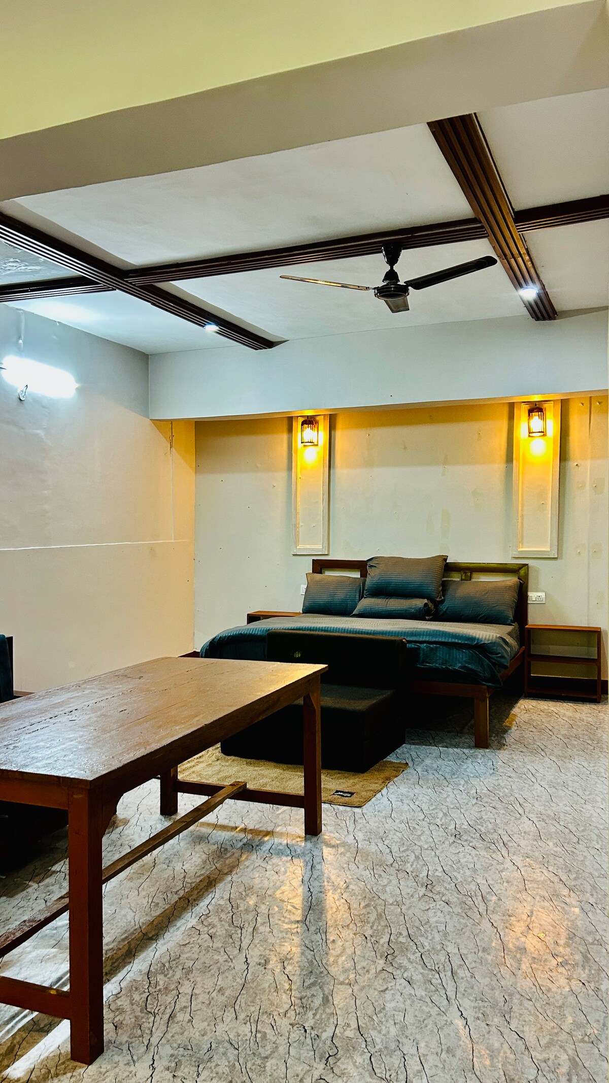 Welcome to our cozy and stylish flat in the heart of Rishikesh This newly renovated one-bedroom apartment is perfect for solo travelers, couples, or small families looking to explore the city. The space features a comfortable king sized bed, a modern bathroom with a walk-in shower, and a fully equipped kitchen where you can prepare your favorite meals. The living area is bright and airy, with a comfortable sofa and a Smart TV for your entertainment needs.