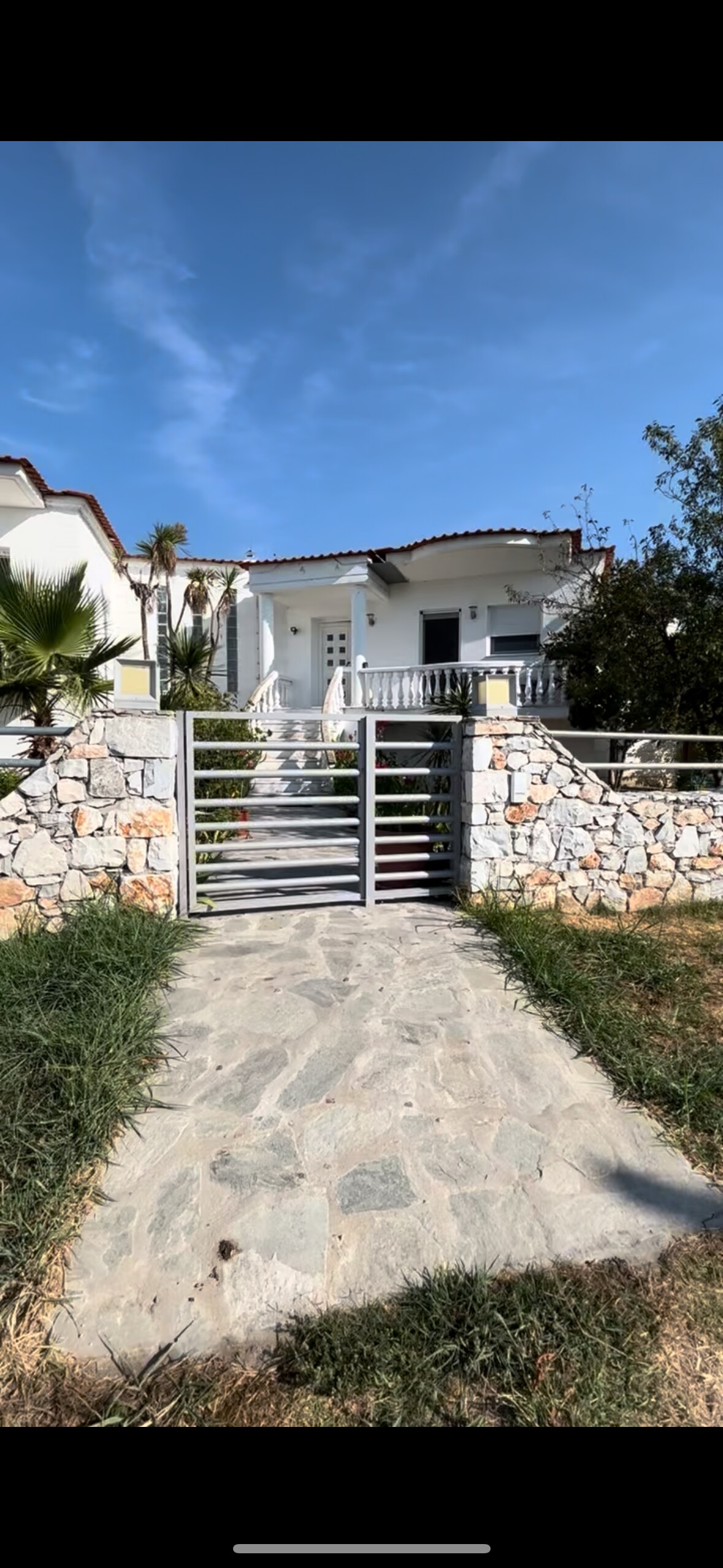 illa de 140m² entourée d'oliviers SALON 25m² 3 CHAMBRES avec climatisation 10 lits, 6 doubles, 2 canapés-lits, 2 lits simples 3 lits bébé/berceaux, 3 SALLES DE BAINS cuisine micro-ondes et four statique, 2 grands réfrigérateurs avec congélateur 3 VÉRANDAS 3x6 PERGOLA 60m², équipée pour petit déjeuner déjeuner dîner, barbecue four rôtissoire, AIRE DE JEUX 200m² COUR 300m² Animaux acceptés. PLAGE À 300 mètres de la baie de Skidia et à 1200 mètres des plages d'Aliky et Thimonià.