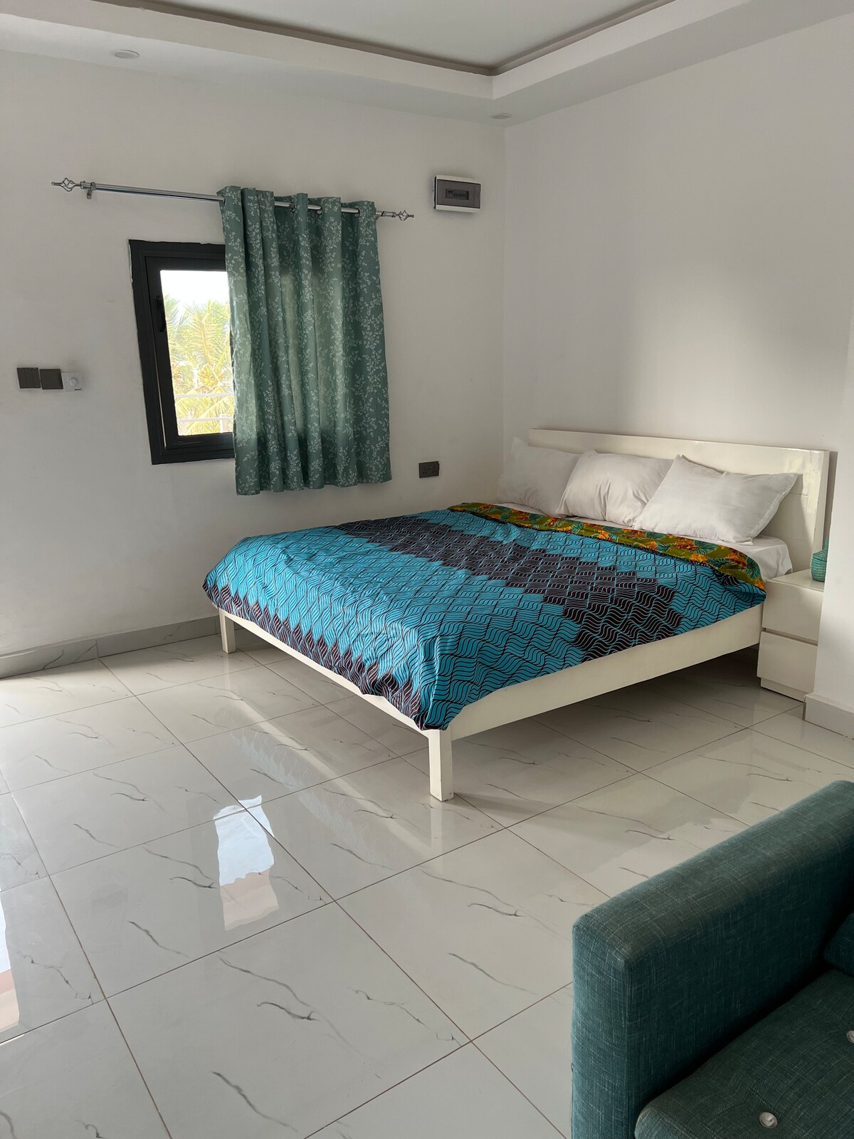 Un appartement spacieux de luxe de deux chambres à Kerr-Serign. Toute la maison pour vous. À quelques minutes en voiture ou à pied de la plage, du restaurant et des clubs de Senegambia. Meublé selon des normes élevées. Séjour avec climatiseur et deux ventilateurs de plafond, une cuisine ouverte avec coin repas. Chambre avec ventilateur de plafond et climatiseur et deuxième chambre avec ventilateur de plafond. Veuillez noter que le prix de la chambre n'inclut pas l'électricité. L'utilisation sera facturée séparément en fonction de votre consommation. Merci beaucoup.