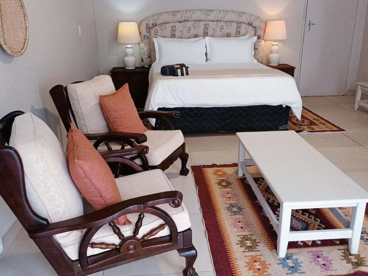 The Luxury Queen Room features a private entrance, and an en-suite bathroom with a bath, shower, and towels. Enjoy air-conditioning, coffee/tea facilities, a TV, a workstation, a patio with seating, Netflix, Showmax, and access to a communal pool.