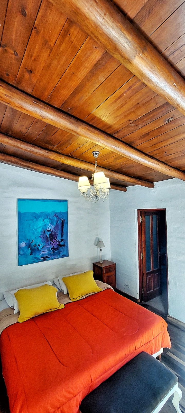 Esta encantadora habitación del Hotel CasaCalma cuenta con todo lo necesario para una estadía maravillosa. Servicio diario de limpieza, calefacción eléctrica y salamandra a leña, infusiones de cortesía en habitación, desayuno tipo buffet incluído, estacionamiento. La disposición de las camas pueden ser 3 singles o 1 doble y 1 single. Tiene terraza privada con reposeras y mesitas para disfrutar de los maravillosos paisajes de la Quebrada de Humahuaca. El hotel cuenta con bar y restaurante.