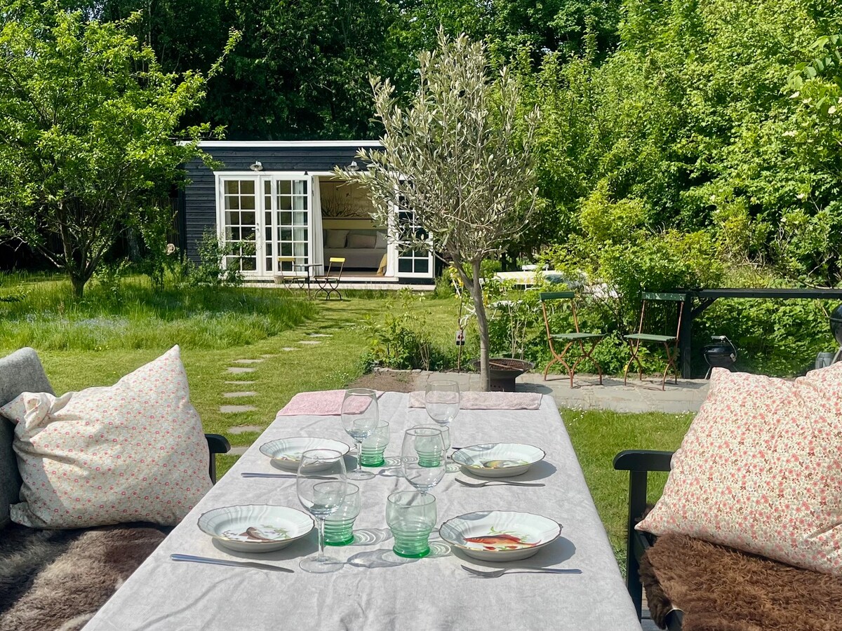 Petit chalet en bois situé dans un grand jardin luxuriant et semblable à un parc, privé et séparé de la maison principale, à seulement quelques minutes d'une grande forêt, de belles plages et d'une charmante ville avec des commerces, des cafés et des restaurants, et à proximité du train. Il dispose d'une pièce principale avec deux lits assemblés, d'une cuisine séparée pour une cuisine simple et d'une salle de bains. La terrasse a un toit et est entourée de fleurs, d'arbres et de buissons. Parfait pour une escapade romantique.
