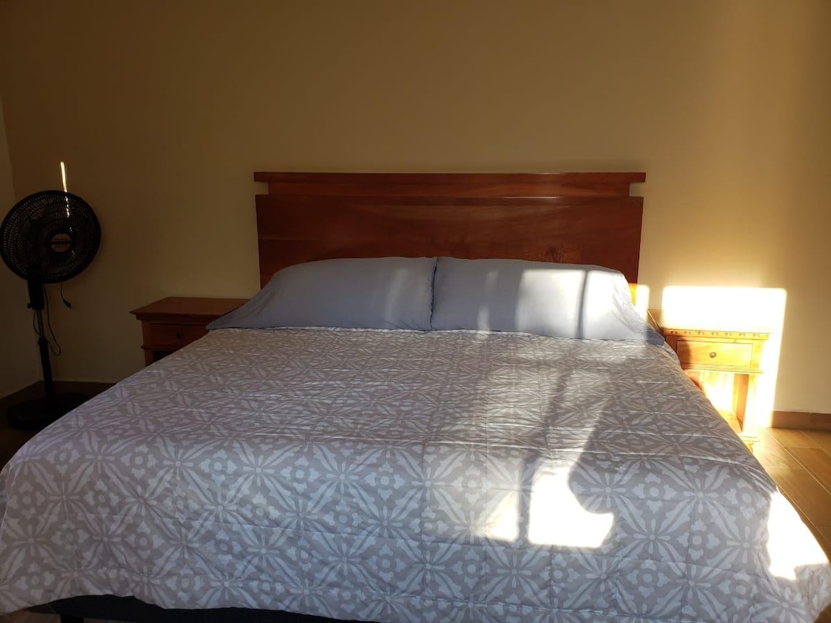 Ce logement est idéal pour les couples, les petites familles ou les voyageurs de passage et de travail à la recherche d'un espace calme et confortable pour se reposer. Il dispose d'un lit king size qui garantit un repos spacieux et confortable. Son emplacement stratégique permet de rejoindre à pied la gare routière et le centre historique. De là, vous pourrez visiter El Tajín, profiter des Voladores de Papantla ou simplement vous détendre dans une atmosphère chaleureuse et silencieuse, où le repos est la priorité.