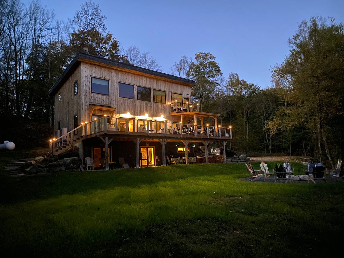 Évadez-vous dans notre superbe maison en verre nichée dans la forêt du Vermont. Cette retraite moderne offre une vue imprenable à 360 degrés sur une nature sauvage luxuriante et de belles voies navigables. Détendez-vous dans le spa, réchauffez-vous près de la cheminée confortable ou rajeunissez dans le sauna. Les baies vitrées apportent la nature à l'intérieur ! Parfait pour les escapades romantiques, les petites familles ou simplement pour travailler loin du travail avec le wifi fibre. Découvrez la tranquillité en toute saison dans ce refuge unique en son genre. Réservez dès maintenant pour une escapade inoubliable !