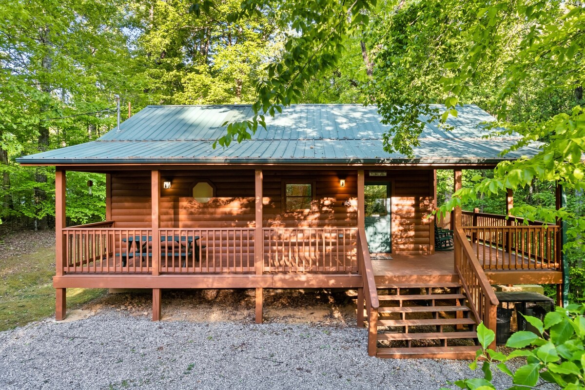 Une véritable cabane en rondins confortable située au cœur des Smoky Mountains, à 7 miles du centre de Pigeon Forge. Détendez-vous et profitez de la vraie cheminée à bois lors d'une nuit fraîche ou profitez du foyer paisible sur notre magnifique terrain boisé de 3/4 acre. Observez la faune depuis la terrasse panoramique avec une belle vue sur l'étang où vous pouvez pêcher. Le jacuzzi vous attend après une longue journée de plaisir dans les Smoky Mountains ! Pour une touche finale spéciale, profitez du magnifique jacuzzi romantique. Ce petit chalet est une escapade romantique parfaite.