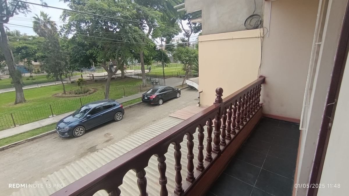 Disfruta de la sencillez de este alojamiento tranquilo en el centro de Trujillo. El ambiente cuenta con una terraza muy acogedora con comodidades al aire libre, se encuentra ubicada a 3 cuadras del centro historico de Trujillo y tambien cuenta con un dormitorio con tratamiento acustico para un mejor descanso.