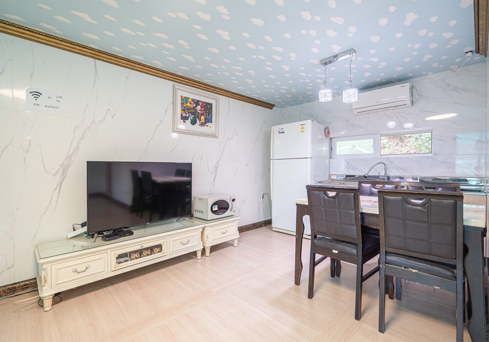 - Événement de logement nouvellement ouvert en août ! Piscine chauffée gratuite fournie ! (nombre limité de fois ×, température maximale 60 degrés !) - C'est un hébergement où les enfants et les parents peuvent profiter du bonheur, situé au centre des attractions touristiques de Gunsan, à 10 minutes à pied de Lee Seong-dang, et à 15 minutes d'autres attractions touristiques. - (Piscine d'eau chaude) Utilisation quatre saisons/changement d'eau quotidien -(2 chambres, 1 lit queen size dans chaque chambre) * Nous fournissons un matelas pour chaque personne supplémentaire - (Parking disponible à côté de l'hébergement pour 1 voiture / Pour 2 voitures ou plus, nous fournirons des informations sur les parkings à proximité) *** Articles fournis *** - (Fournitures de piscine) : 1 tube - (Électronique) : télévision portable -(purificateur d'eau/réfrigérateur/bouilloire électrique/micro-ondes) - (Vaisselle : diverses assiettes/casseroles, poêles à frire, tasses, plateaux, ciseaux, etc.) -(Fournitures de douche) : shampoing/après-shampoing/gel douche/brosse à dents, dentifrice