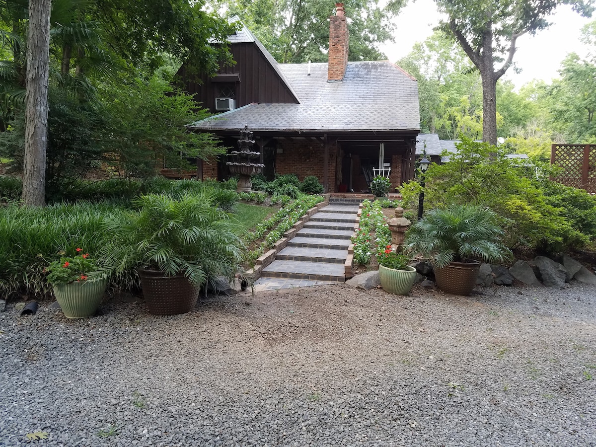 Maison rustique unique en son genre, personnalisée et construite en 1960. Il s'agit de la maison principale d'un domaine fermé situé à South Charlotte, 28226. Cette maison de 2450 pieds carrés impeccablement meublée dispose de 3 chambres et de 2 salles de bain. 2 lits King Size, 1 lit Queen Size et 2 lits complets, la chambre Queen Size est au premier étage. Les équipements comprennent un jacuzzi, une cascade extérieure, un foyer extérieur, 7 chaises à bascule, un hamac et un barbecue à gaz. Ouvert aux fêtes et événements sélectifs. Ce n'est pas seulement une maison, c'est une expérience.