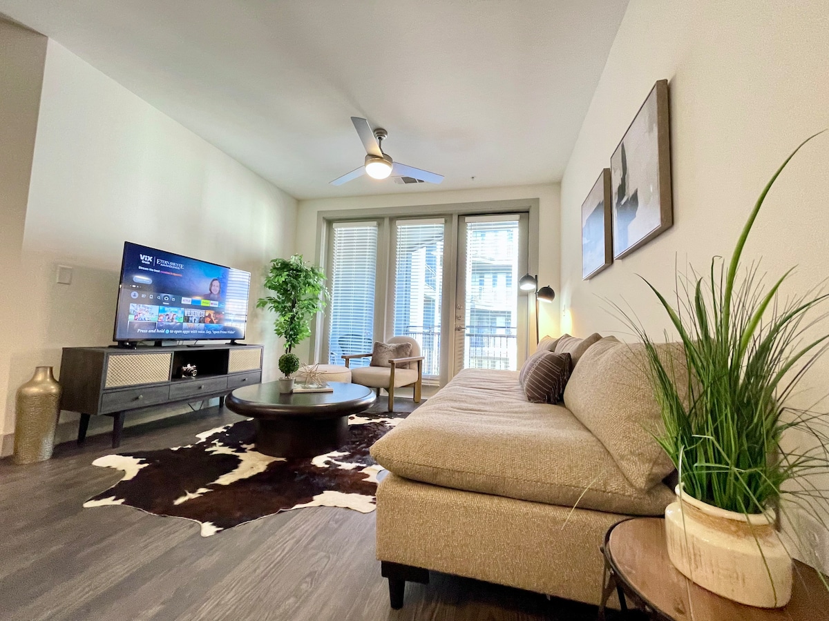 Modern 1BR in the heart of Deep Ellum! Enjoy a stylish open layout featuring a sleek kitchen, quartz countertops, a smart TV, and a plush sofa. Relax in a cozy queen bed and spa-like bathroom with a double vanity. Walk to top bars, music venues, and eateries. Includes Wi-Fi, in-unit laundry, private balcony, and keyless entry. Perfect for couples, solo travelers, or business guests looking for comfort and convenience in one of Dallas’s most vibrant areas.