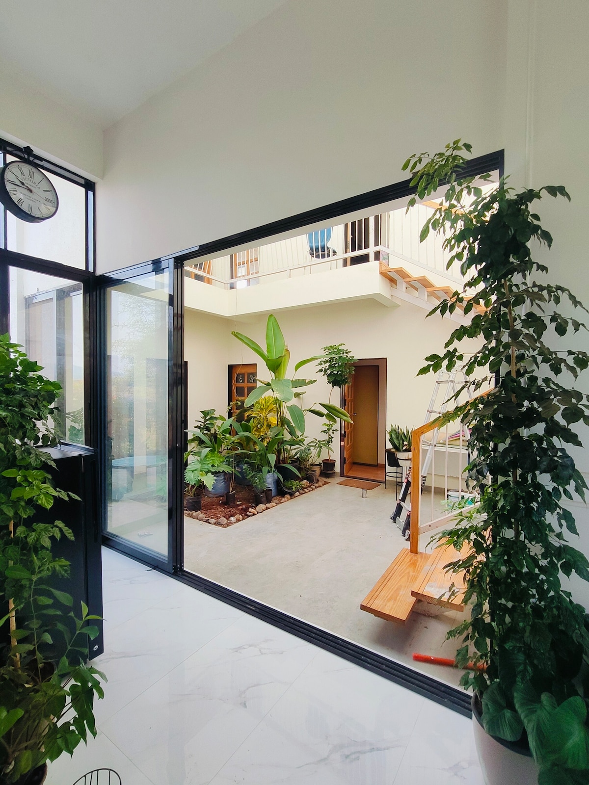 Villa 3-BHK avec pelouse verte et espace barbecue extérieur