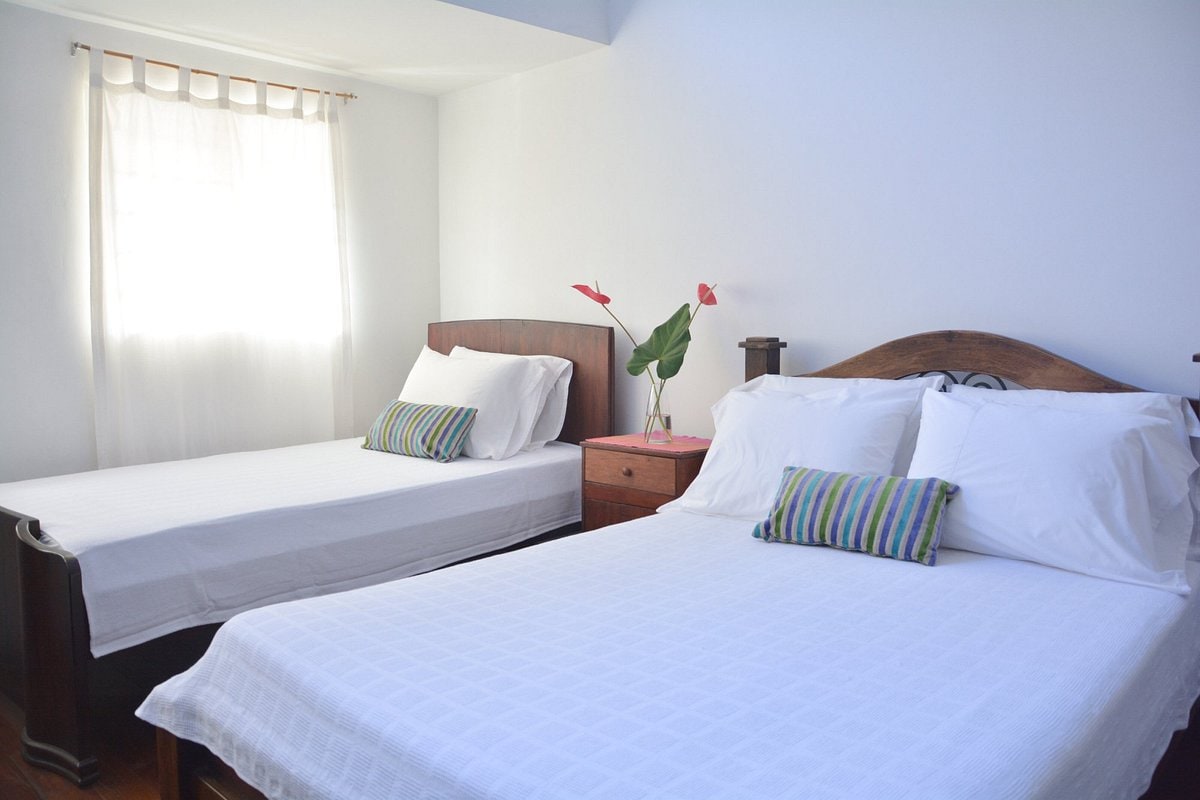La habitación "Chontaduro" en el tradicional Barrio San Antonio, Cali, está diseñada para brindarte una estancia cómoda y acogedora. Con una fusión de arquitectura clásica y moderna, ofrece un ambiente tranquilo y agradable. Equipada con dos camas, una doble (1.90 x 1.40 m) y una sencilla (1.90 x 1.00 m), cuenta con aire acondicionado, TV, WiFi y baño privado para tu total confort. Su ubicación privilegiada te permite acceder fácilmente al centro de la ciudad y a diversos puntos de interés.