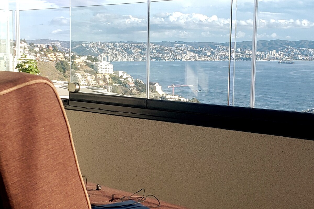 Lieux d'intérêt : MAISON DE PABLO NERUDA, MUSÉE À CIEL OUVERT, CENTRE HISTORIQUE DE VALPARAISO. Vous allez adorer mon logement, en raison du beau panorama qu'offre ma terrasse, vue panoramique sur la baie de Valparaiso et ses collines, l'emplacement et l'atmosphère. Mon logement est parfait pour les couples, les aventuriers et les voyageurs d'affaires.
