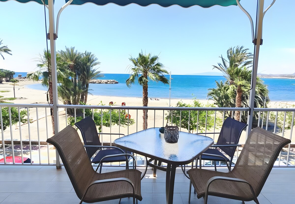 Le meilleur de cet appartement est la vue à 180 degrés sur la mer depuis l'appartement. Vous pourrez prendre le petit déjeuner en regardant la mer et vous pourrez entendre les vagues pendant que vous dormez. Confortable et confortable avec tout ce dont tu pourrais avoir besoin pour passer des vacances de luxe. Grâce à notre Wifi, vous pourrez télétravailler en regardant la mer. Nous avons récemment installé des auvents électriques, si vous quittez la maison et que le vent se lève, il sera automatiquement récupéré.