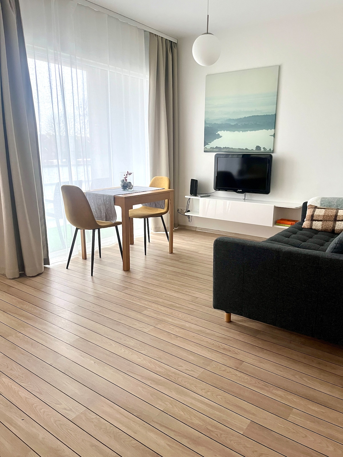 The apartment is located away from city noise, surrounded by nature. It’s perfect for solo travelers, couples, and especially families with children who need more space. Kids will find toys in the rooms, and in the enclosed yard, there is a playhouse, swings, a trampoline, and more. Parents sitting on the balcony can watch their children play, as the playground is right below. So, if you want to feel at home, stay in these spacious and cozy apartments :-)