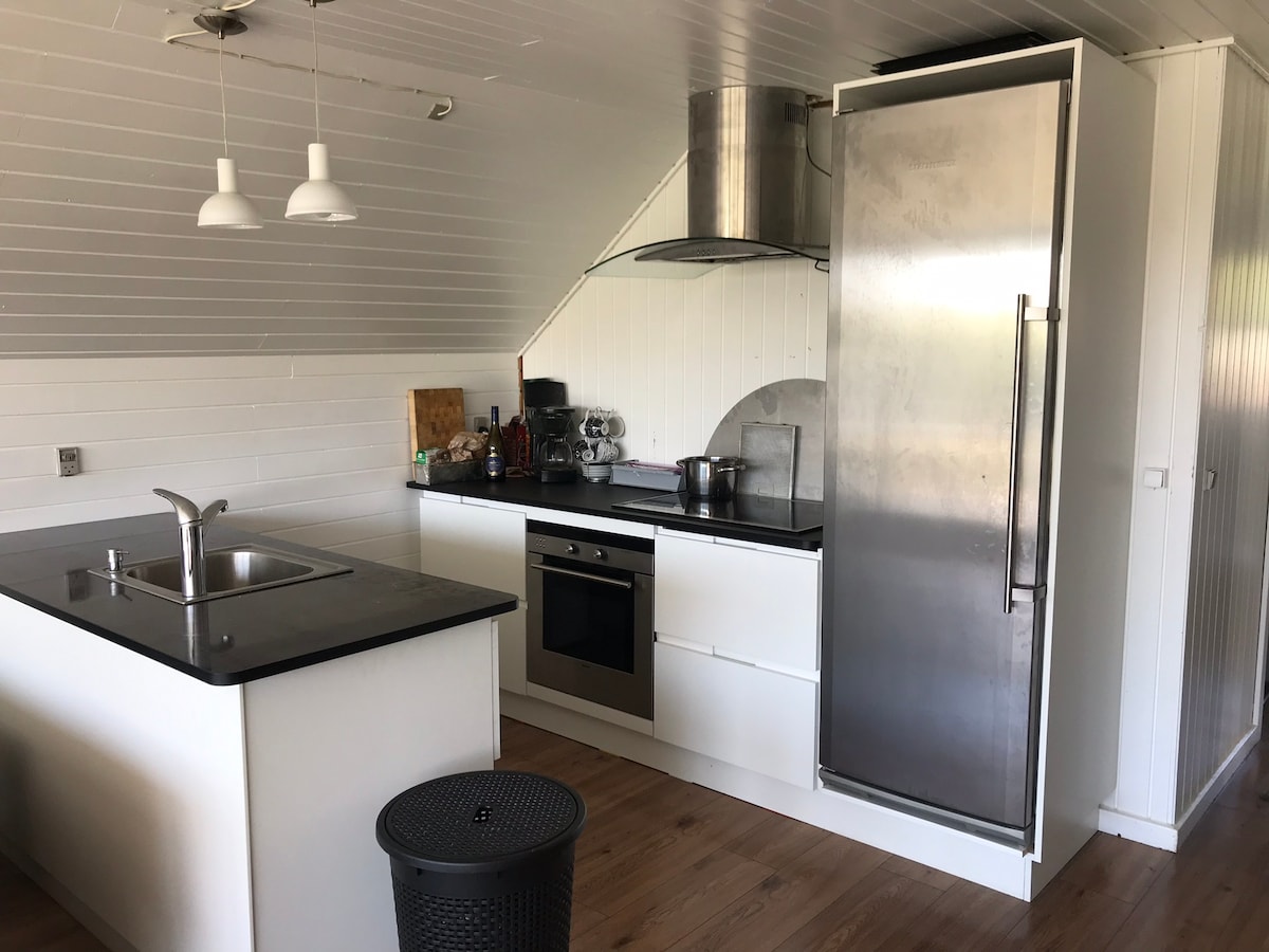Profitez de la tranquillité de la maison de jardin confortable. Profitez de la vue sur le fjord et écoutez les oiseaux chanter dans le jardin. Détendez-vous complètement et découvrez la nature de près. Dans cette maison de vacances, il y a de la hauteur sous plafond et de l'espace pour se détendre de la vie quotidienne. Vous aurez votre propre petit coin de jardin pour vous détendre. Ici, tout est conçu pour créer confort et tranquillité. Nouveau lit confortable, cuisinière, réfrigérateur et congélateur, espace de travail, wi-fi gratuit (fibre) et parking gratuit. La salle de bain est à vous seul et est située à quatre mètres de l'annexe, avec une entrée discrète.