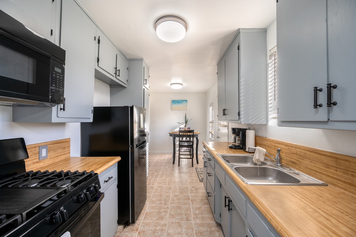 Profitez de votre escapade à Los Angeles dans notre casita confortable, isolée et ensoleillée qui convient pour 1 à 3 personnes. Cuisine complète, salle de bains avec douche, lave-linge/sèche-linge, puits de lumière + patio privé et petite cour. À 5 minutes de la plage et de LAX. Plus de 15 restaurants et bars accessibles à pied. Place de parking incluse.