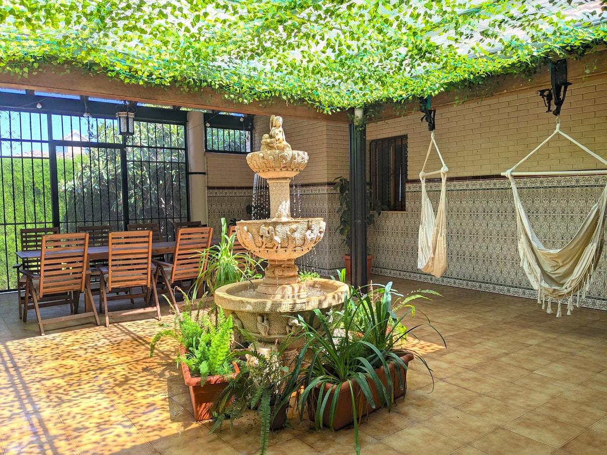 Maison de campagne familiale pour des vacances , de n'importe quel point de la maison on voit la piscine. Les animaux de compagnie sont les bienvenus. ÉVÉNEMENTS La tente n'est pas louée Demander un taxi FÊTES INTERDITES. MUSIQUE JUSQU'À 22 HEURES. Draps inclus Serviettes à partir de 4 nuits. (Cette information est importante) il n'y aura que des serviettes de toilette dans les toilettes) 15 personnes 4 chambres 2 salles de bain ( 1 int , 1 ext) 2 cuisines (1 int. , 1 ext. barbecue)