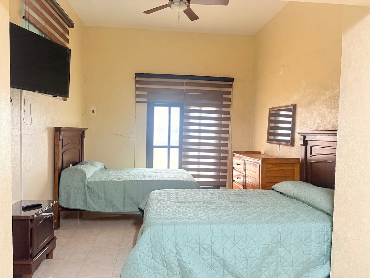 Casa Corona, est située à Villa Corona Jalisco, Mexique. Située à seulement une heure et demie de la ville, Villa Corona offre un environnement idéal pour passer un week-end en famille. Casa Corona fait partie d'une résidence privée, à seulement 10 minutes de la place principale du village, où vous trouverez tout ce dont vous avez besoin. Idéale pour se détendre en famille, elle dispose d'une piscine chauffée par des panneaux solaires, d'un grand jardin et d'une terrasse où vous pourrez profiter de couchers de soleil exceptionnels.