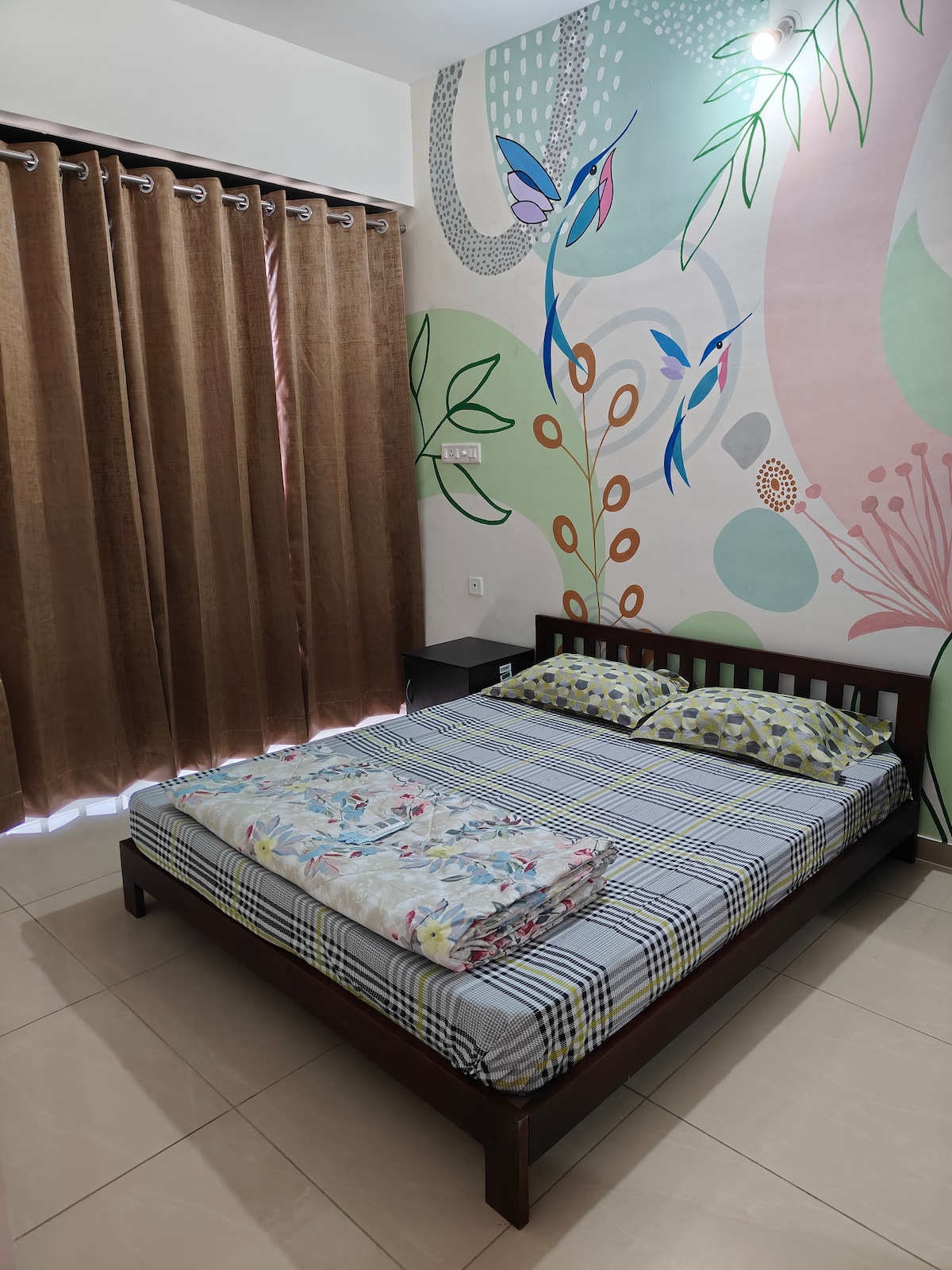 Notre logement est dans un endroit très calme. À dix minutes de l'aéroport, à proximité des centres commerciaux Osho ashram, des visites touristiques et de bons restaurants et pubs. C'est une partie de notre maison spécialement conçue pour les voyageurs. Pour la sécurité, l'entrée dispose d'une caméra de vidéosurveillance. Les voyageurs auront leur jeu de clés pour aller et venir quand ils le souhaitent puisque nous restons dans le même bâtiment. Tout ce dont les voyageurs ont besoin, nous le donnons facilement. La propriété n'a pas d'escaliers, elle est au rez-de-chaussée. Il y a le salon, la chambre, la salle de bain et la cuisine au rez-de-chaussée.