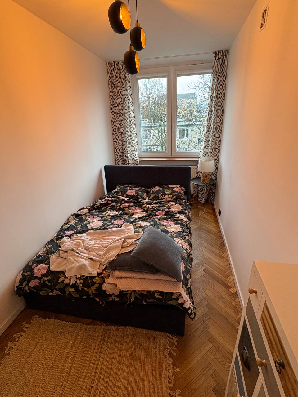 Appartement récemment rénové dans un style scandinave. L'appartement est situé dans un immeuble d'après-guerre rénové, dans un quartier très calme et paisible, avec beaucoup de verdure. À quelques minutes, il y a de nombreux magasins locaux et CH. Excellente communication - à quelques minutes à pied de la gare de l'Ouest : - 5 stations de l'aéroport (WAW) - 15 min, - 2 stations jusqu'au centre - 8 min. En 10-15 minutes, vous pouvez visiter les parcs urbains à proximité : Parc Szczesliwicki, Parc Zachodni, Pole Mokotowskie.