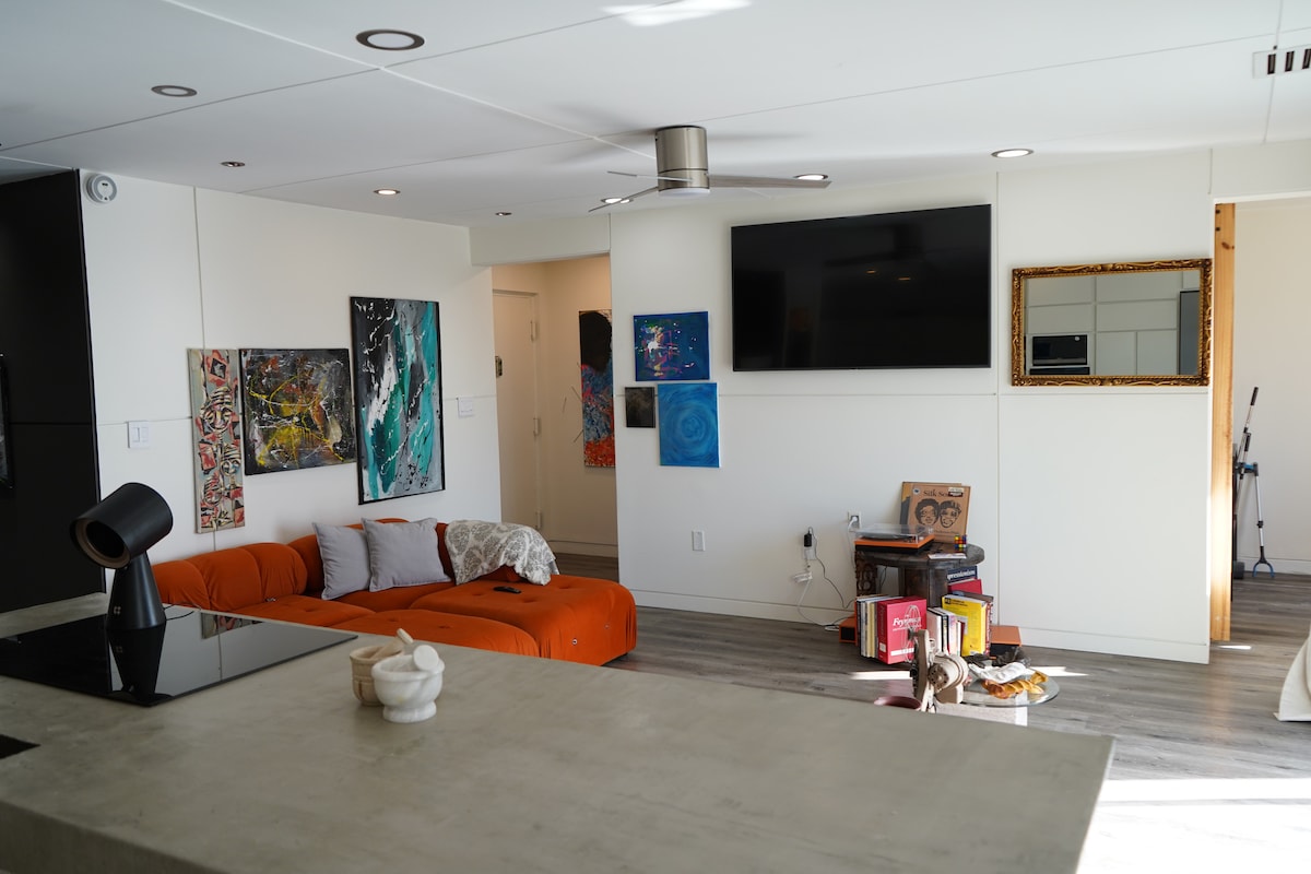 Cet appartement moderne au sous-sol offre confort et intimité. Il dispose de sa propre entrée pour un accès facile, de 2 chambres privées, chacune avec un placard, un bureau à hauteur réglable, une chaise d'ordinateur et une télévision, idéal pour le repos ou le travail à distance. L'appartement dispose d'une salle de bain complète avec des serviettes fraîches et des articles de toilette, d'une kitchenette avec évier, micro-ondes, réfrigérateur et des articles essentiels pour cuisiner légèrement, ainsi que d'un coin salon confortable avec cheminée, télévision et Internet rapide. L'ensemble de l'appartement dispose d'eau filtrée UltraTech et est alimenté par l'énergie solaire.