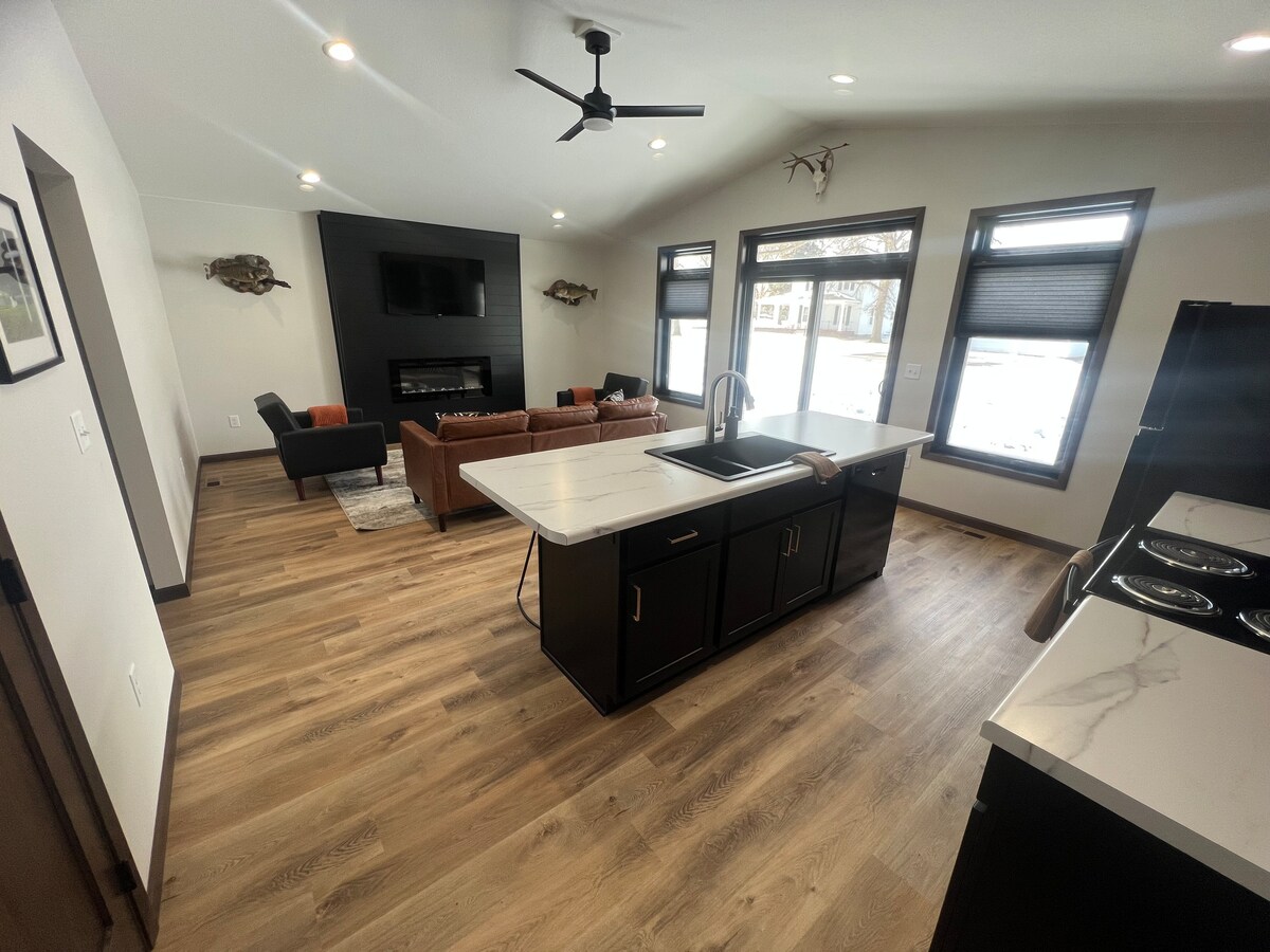 Profitez de notre maison de 2 chambres et 2 salles de bain entièrement meublée pour votre séjour ! Des sentiers pittoresques et un parc sont à quelques pas. À seulement 5 minutes en voiture de la Prairie Lakes Ice Arena et du centre-ville de Watertown. Profitez d'un foyer au gaz dans une chambre 4 saisons confortable, d'une cuisine spacieuse, d'une « caverne d'homme » avec une télévision de 75 po, d'une chambre principale relaxante avec un lit king-size réglable et d'un bureau polyvalent qui peut également servir de chambre, avec un matelas pneumatique en option. Stalles de garage chauffées attenantes incluses. Confortablement peut accueillir 6 personnes.