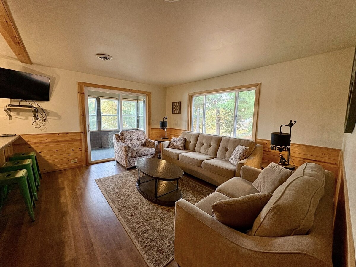 Détendez-vous à Plainfield dans ce joli chalet. Nichée dans un cadre paisible, cette propriété accueillante offre une escapade agréable aux voyageurs. Avec 2 chambres confortables, dont un lit King, un lit superposé avec des matelas doubles et jumeaux, tout le monde trouvera l'endroit idéal pour se détendre. Plongez dans un environnement serein et profitez de la beauté de la nature. Long Lake est de 55 acres d'eau cristalline avec des unités d'aération. Elle est idéale pour la baignade, la pêche et les jouets aquatiques.