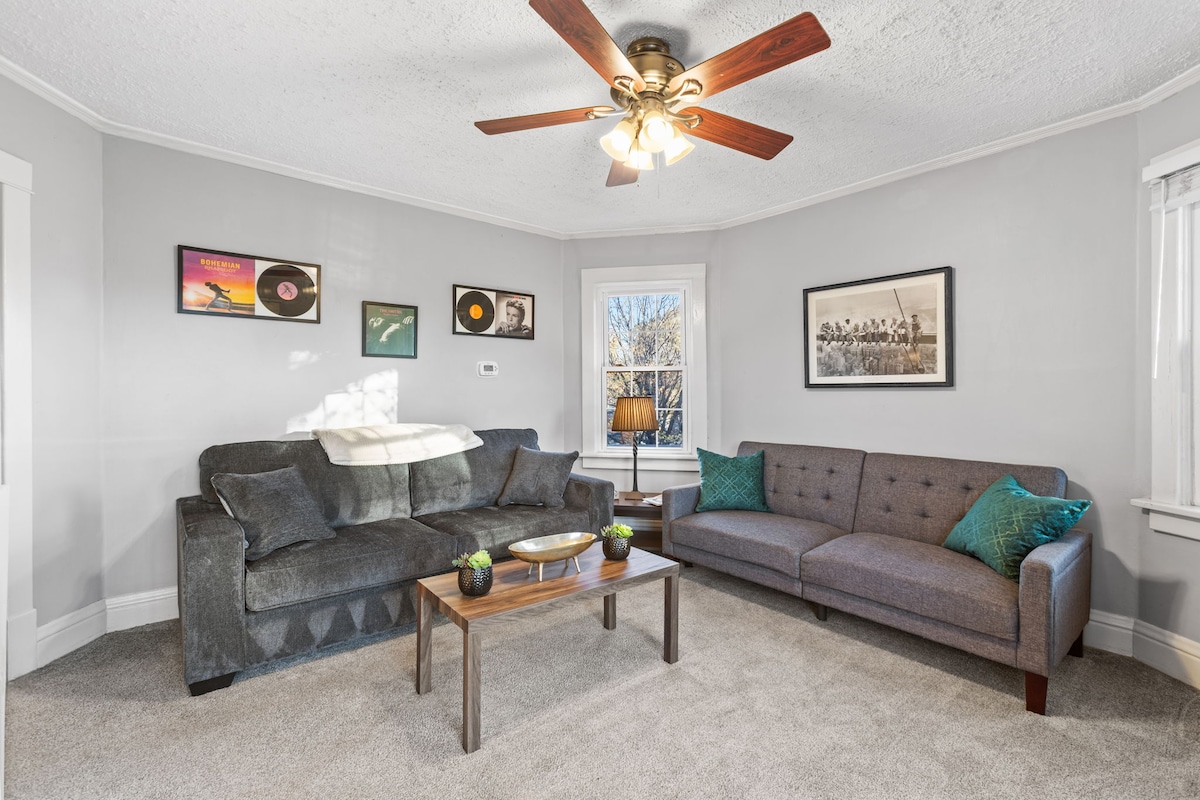 Villa de 2 chambres dans un quartier populaire du sud-ouest d'Omaha. Près de Village Point et des zones commerçantes au bord du lac. Également à proximité de nombreux restaurants, cinémas, hôpitaux et plus encore. 2 grandes chambres et un canapé convertible au niveau inférieur. Garage disponible pour le stationnement. Le patio est ouvert sur l'espace commun. Proche des sentiers pédestres et du parc. Entièrement meublé avec tout le nécessaire.