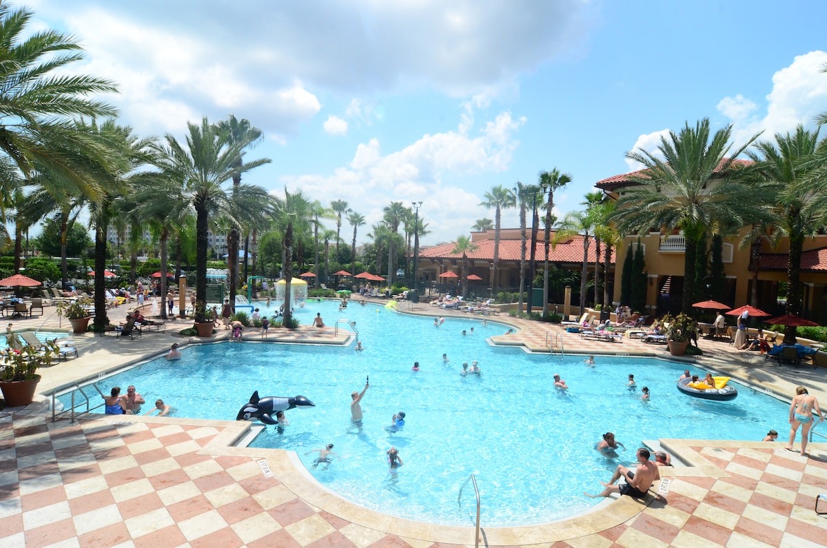 NAVETTE GRATUITE & PARKING Pas de FRAIS DE RESORT * Idéalement situé à EPIC, DISNEY * UNIVERSAL & SEA WORLD * PAS DE FRAIS DE RESORT * Harry Potter & Disney Them * 1 lit KING * 1 lit QUEEN * Cuisine * Suite privée 3ème étage Vue Piscine 1 Chambre * 1 Salle de bain * Disney Springs 2 miles, Universal & Epic 6 miles * Piscine chauffée * Jacuzzi * Barbecue à gaz Grills & Four à pizza * Location de poussettes sur place * Blanchisserie sur place * Machines à glaçons * Basketball * Salle de jeux * Restaurants à pied