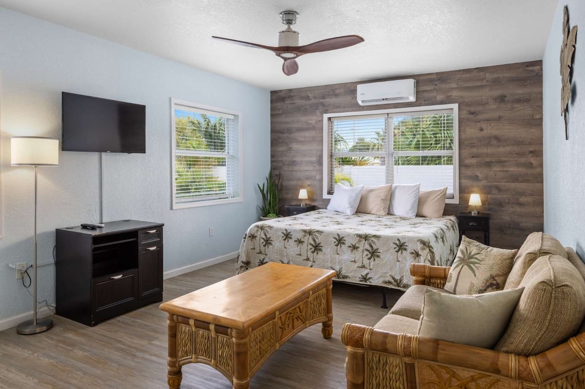 Explorez les Keys de Floride depuis notre coin de paradis au bord de l'eau. Nos spacieuses suites d'une chambre peuvent accueillir 4 personnes, comprennent une cuisine complète et disposent d'un magnifique front de mer. Détendez-vous sur notre charmant terrain et profitez de notre piscine, pêchez depuis nos quais, profitez d'un peu de temps sous nos huttes tiki ou amarrez votre bateau avec nous. Nous sommes à quelques minutes du parc d'État de John Pennekamp Coral Reef et de dizaines d'autres attractions incontournables de Key Largo. Dégagez la chambre d'hôtel et réservez nos grandes locations pour votre séjour !
