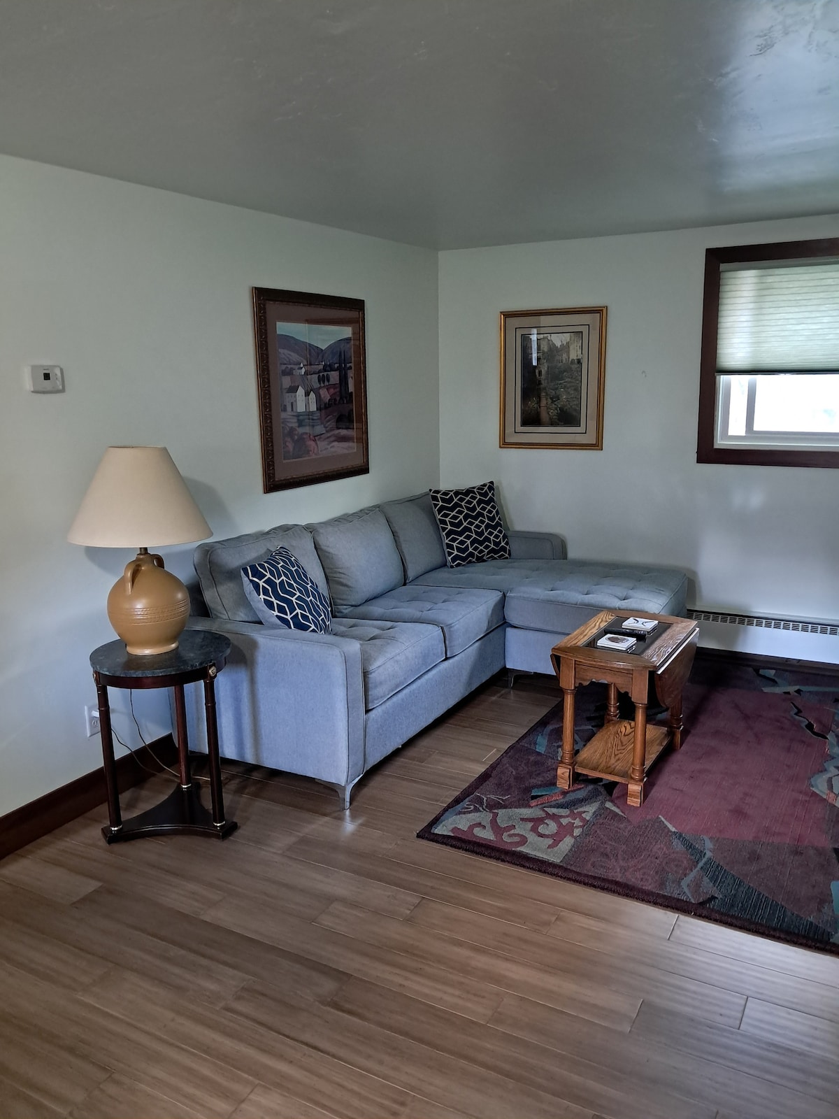 Cet appartement a été ajouté à l'arrière de notre garage détaché il y a environ 5 ans. Des produits à faible teneur en COV ou sans COV ont été utilisés tout au long de la construction. Appareils électroménagers neufs installés avec un four assez grand pour cuire la plus grosse dinde dont j'ai jamais rêvé. Vue spectaculaire sur les crêtes et belles nuits étoilées. Sentiers de randonnée et de ski de fond sur la propriété d'environ 75 acres. Cueillez des noisettes à l'automne, collectez et faites bouillir votre propre sève d'érable au printemps et cueillez des myrtilles en été.