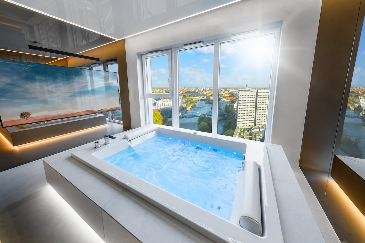 Appartement 23e étage, jacuzzi avec vue sur la rivière