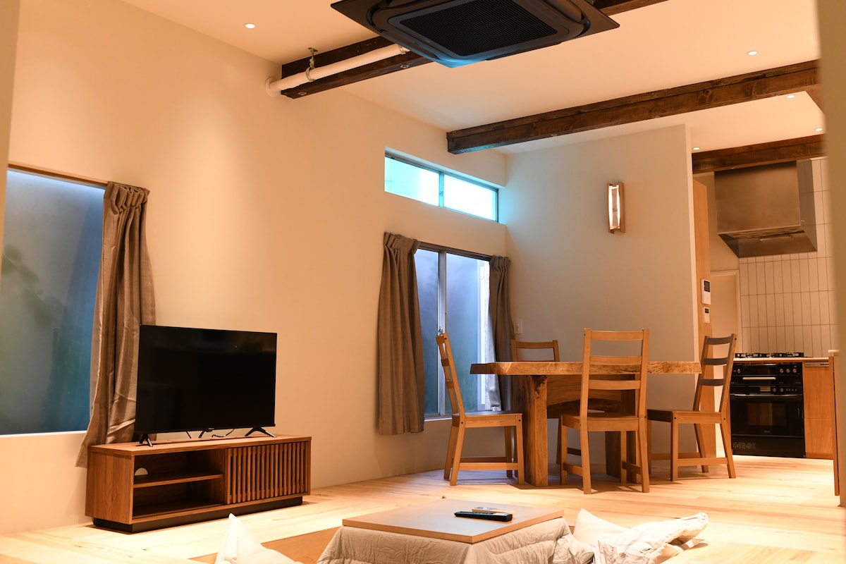 Ce spacieux kominka japonais reflète discrètement la beauté de l'artisanat traditionnel, avec des poutres en bois naturel et des matériaux soigneusement sélectionnés. Tout en préservant son charme intemporel, la maison a été modernisée pour le confort, y compris le chauffage au sol dans le salon, les chambres et la salle de bain. Une cuisine bien équipée en fait un endroit chaleureux et accueillant pour se détendre. Comme beaucoup de nos voyageurs l'ont dit, c'est là qu'ils ralentissent, lisent des livres et prennent le temps de réfléchir.