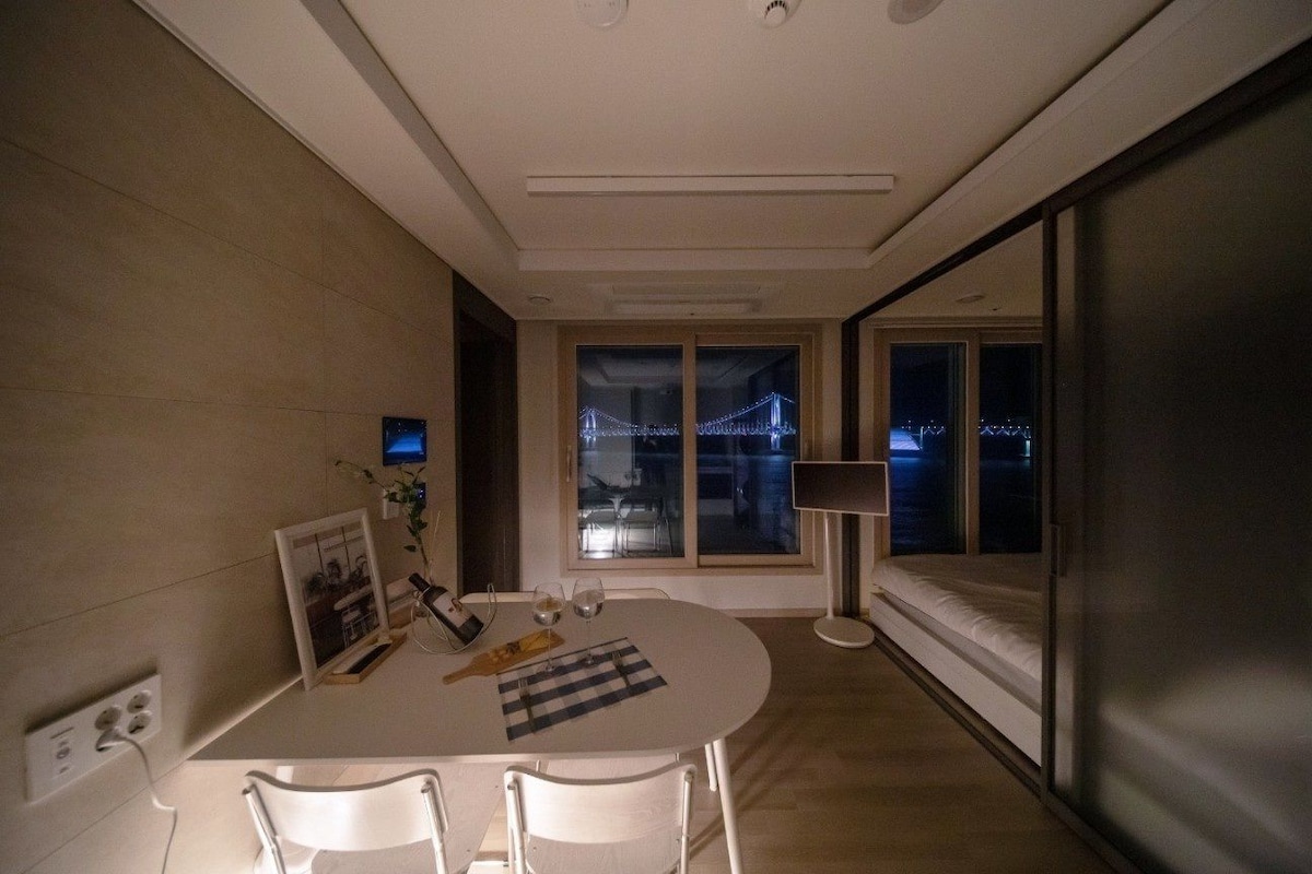 #Wonduamak# Devant la plage # Vitre # Vue de face du pont.#Gwangalli dernier étage#5 secondes de la plage#dépôt gratuit de bagages#Netflix