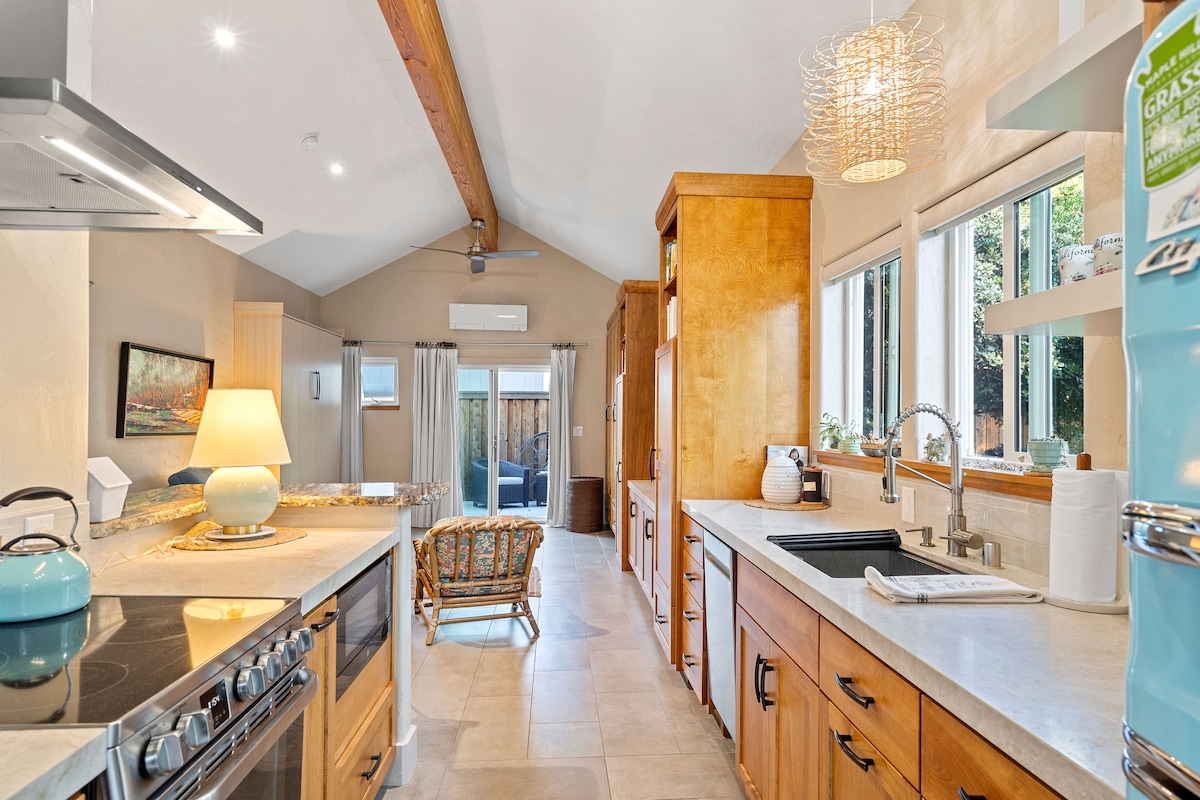 Un logement annexe (ADU) nouvellement construit dans un quartier tranquille, convivial et bordé d'arbres. Cet ADU est conçu pour une esthétique et une fonctionnalité modernes, avec un aménagement ouvert et des éléments de design bien pensés. La cuisine est équipée d'appareils modernes et de plans de travail élégants, tandis que le salon est spacieux et bien éclairé. L'appartement est un clin d'œil à la culture de la ferme à la fourche, qui est Davis. Slide Hill Park propose des espaces verts luxuriants, des sentiers pédestres et des installations de loisirs.