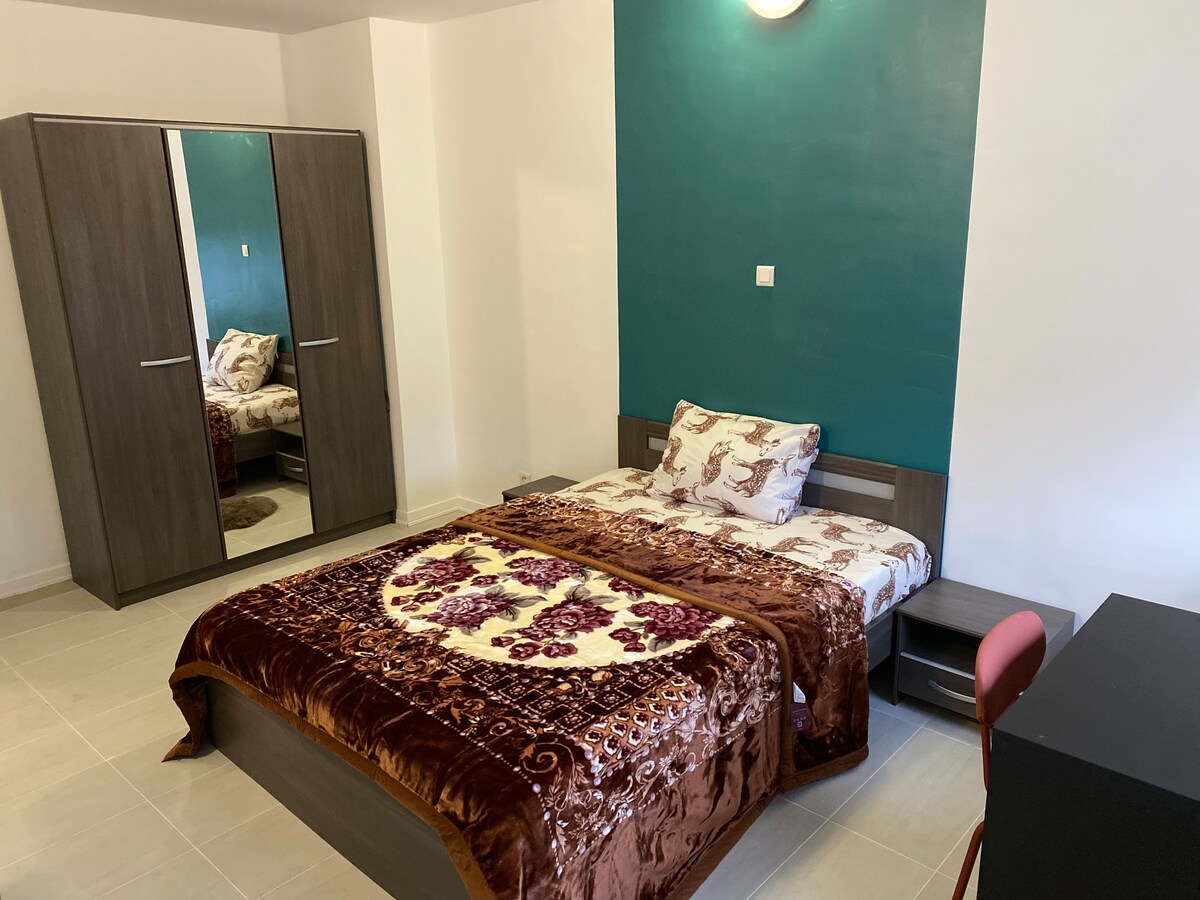This is a studio in a residence near train station of Thionville. You have kitchen, bathroom and toilet in side your studio, plus you have access to shared facilities such a living room, washing machine etc. The studio is on 3nd floor. It is around 7 minutes walk to Thionville train station, about 3 minutes to Bus stop where you can take many buses. It is in Thionville city center as well, so you have lots shops around the building. It is a double bed, 160*200 cm.