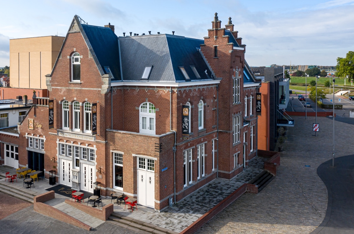 Un endroit unique dans un lieu unique. À proximité du marché de Hulst, des commerces et des restaurants accueillants. Depuis l'immense salon, vous pouvez voir la bibliothèque dans l'ancien coffre-fort de la banque Lips. La cuisine et la salle de bain sont flambant neuves et entièrement équipées. Un délicieux café de la machine à grains Jura. Il y a 2 chambres avec chacune un lit double à ressorts (1,60-2,00 m, 1,40-2,00 m). Deuxième toilette disponible et possibilité d'accès à une petite cour arrière confortable avec un ensemble de bistro. Wi-Fi gratuit et Netflix