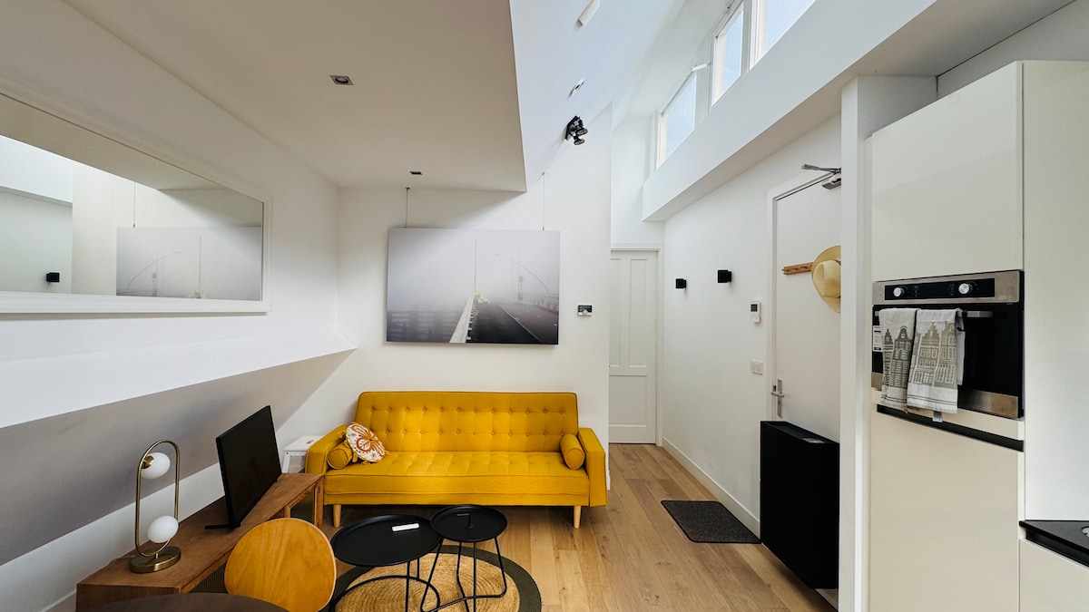Cet appartement se compose d'un salon lumineux et d'une chambre confortable. Vous pourrez vous détendre sur la terrasse sur le toit adjacente, où vous pourrez profiter du soleil en toute tranquillité. De la fenêtre, vous pouvez regarder le centre animé de Krommenie, où les boutiques et les restaurants sont juste dans la rue. L'appartement est entièrement équipé. La gare est à seulement 8 minutes à pied. À partir de là, vous êtes dans : • à 10 minutes de Zaanse Schans. • 25 minutes d'Amsterdam-Centraal